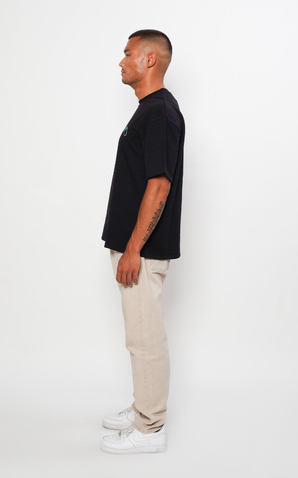 Black 320gsm T mit “Søir Studio” Stick Babyblau